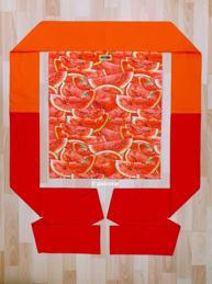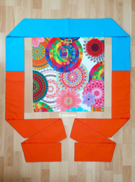 Le tablier du podeagi Psicolor mesure approximativement 50x70cm et les bretelles font un peu plus de 4m d'envergure totale pour environ 13cm de large.
