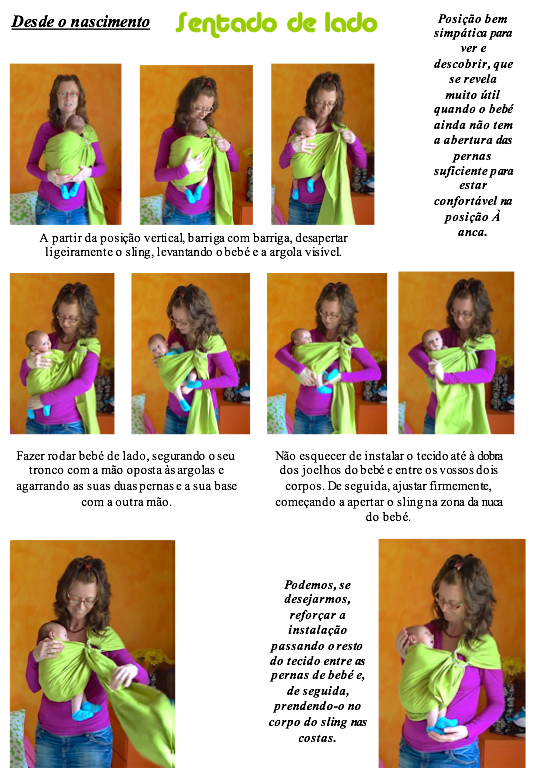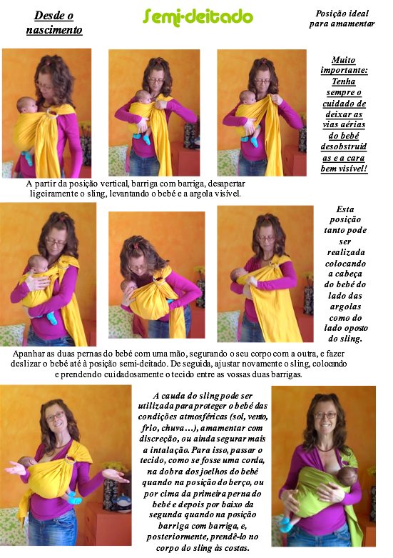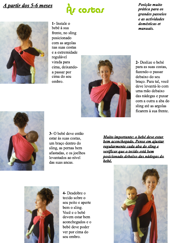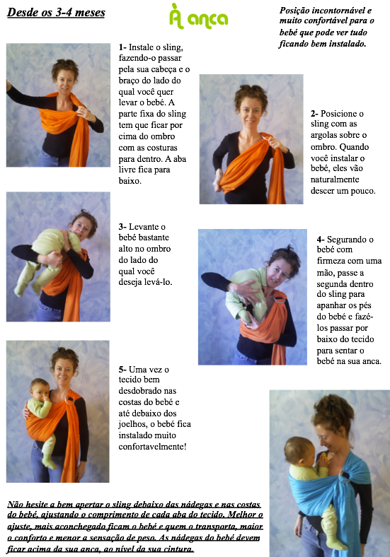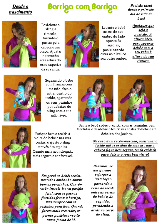 Todos os nossos slings são fornecidos com um guia de utilização ilustrado muito detalhado do qual são extraídas as instruções de utilização a seguir. Ensinamos também através de vários vídeos como este e este.