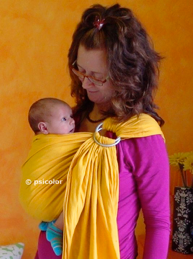 Os slings de argolas são porta-bebés de tecido, tipo rede, constituídos duma única tira regulada com argolas de alumínio maciço.