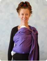 Sling violeta, na posição Barriga com barriga